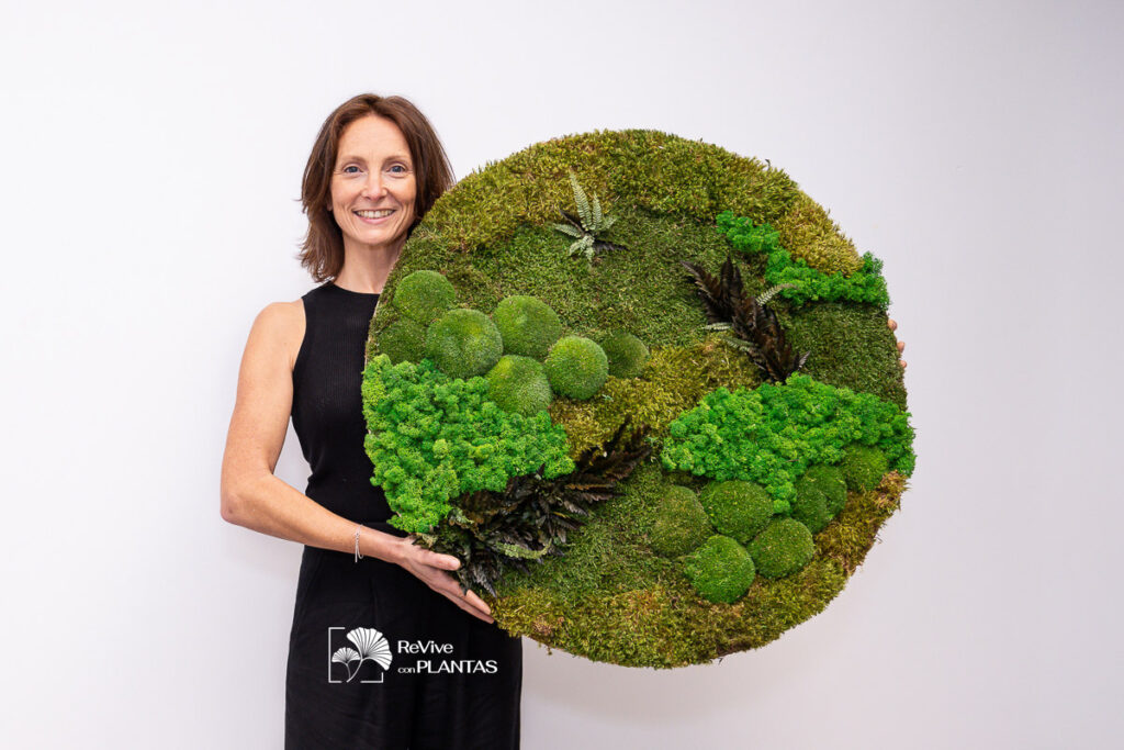Este círculo de Ø80 cm, compuesto por distintas variedades de musgos y helechos preservados seleccionados uno a uno, está diseñado para aportar belleza, armonía, textura y suavidad acústica dentro del hogar, transformando la energía de un dormitorio, despacho, salón, pasillo… a través de la Naturaleza.